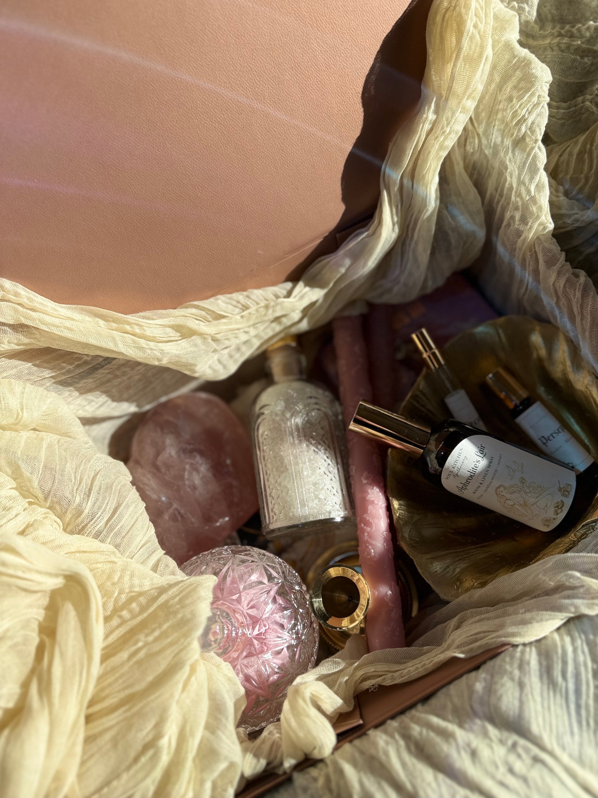 Inside, you’ll find a combination of handcrafted apothecary goods and carefully selected crystals chosen for their energetic presence, aesthetic beauty, and symbolic meaning. Nothing is mass-produced. Nothing is random. Every item is placed with intention.
