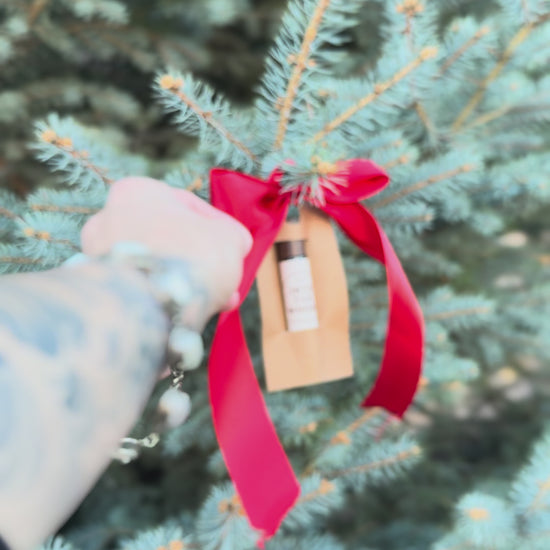 Give the gift of a cozy winter escape with our Into the Woods Perfume Roller, a handcrafted, gender-neutral fragrance that smells like warm rustic woods, soft amber, and a peaceful twilight forest. This long-lasting woodsy perfume oil comes ready to hang directly on the Christmas tree, making it the perfect ornament-style stocking stuffer for fragrance lovers.
